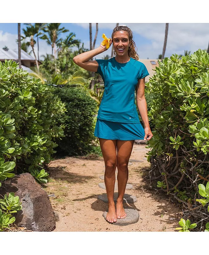 Оставайтесь в прохладе и шикарном образе в свободном топе для плавания Adele, созданном для движения и комфорта. Свободный крой и короткие рукава обеспечивают ощущение свежести, а боковые вставки подчеркивают вашу фигуру. Наслаждайтесь защитой UPF 50+ и быстросохнущей тканью. Идеально подходит для активных солнечных дней. Носите его поверх вашего любимого бюстгальтера для плавания.
