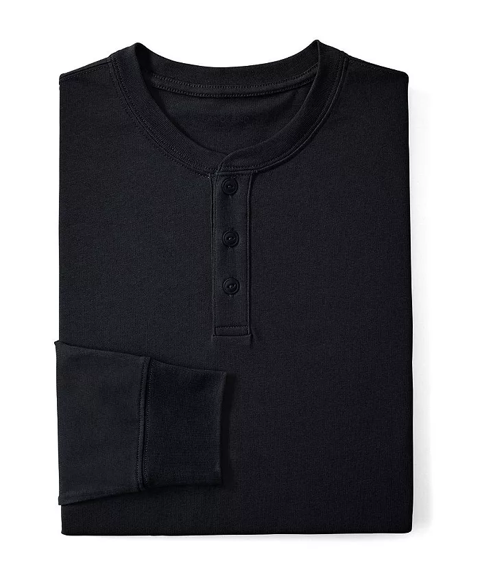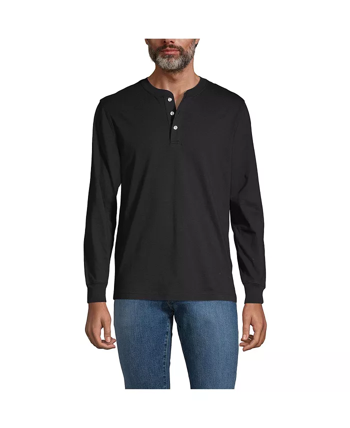 Футболка с длинным рукавом Henley Big & Tall Super-T Lands' End, черный