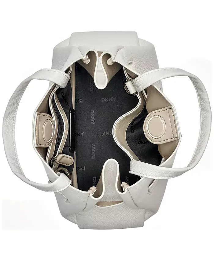 Эта сумка-портфель DKNY, сочетающая в себе непреходящую элегантность и современную функциональность, отличается полированной серебряной фурнитурой с фирменными деталями с логотипом.