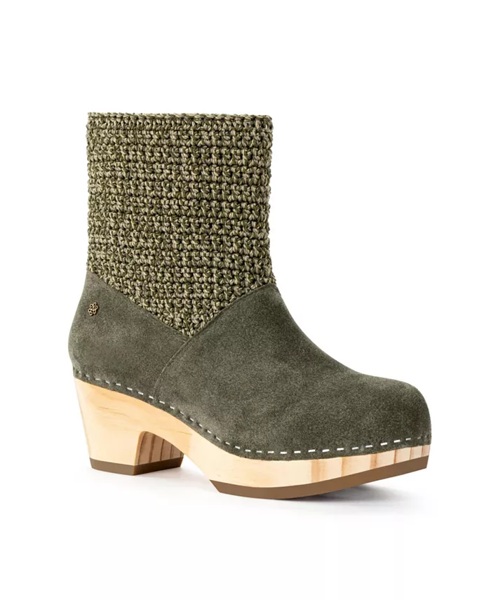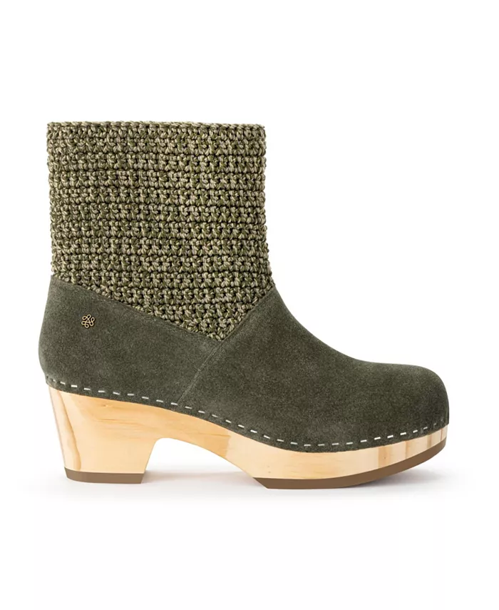 Стиль и комфорт определяют эти ботинки. Они имеют классический силуэт сабо с верхом из смешанной вязки крючком и кожи, идеально подходят для носков или без них для создания повседневно-крутых образов. Они приподняты на деревянном каблуке и застегиваются на открытую молнию сзади.