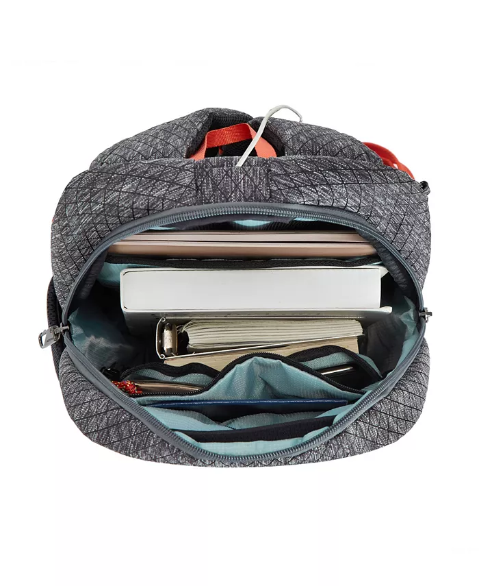Наша встроенная система безопасности помогает предотвратить кражу и защитит ваши ценности от карманников и воров. Включает в себя сетчатый барьер, устойчивый к порезам, спереди, по бокам и в нижней части корпуса, ремень, устойчивый к порезам, запирающиеся отделения и органайзер, блокирующий радиочастотную идентификацию.