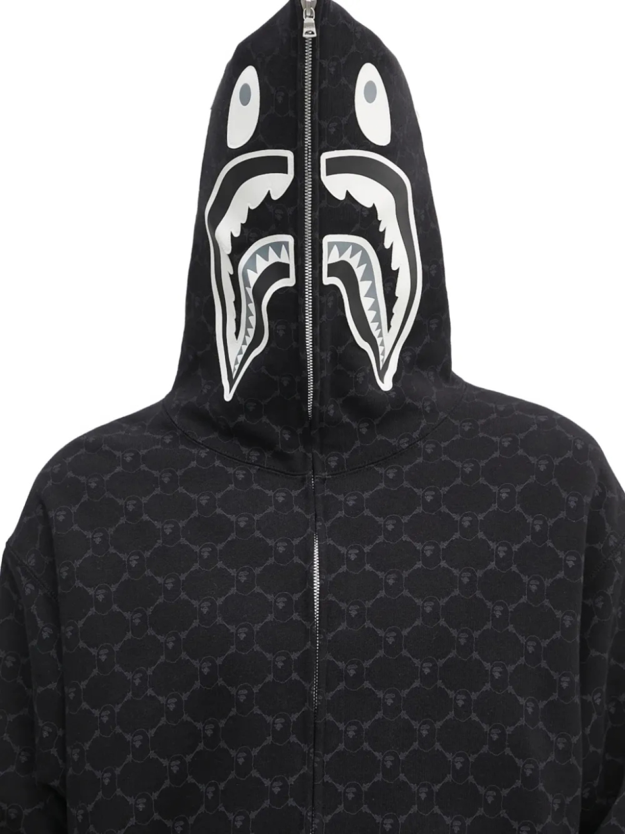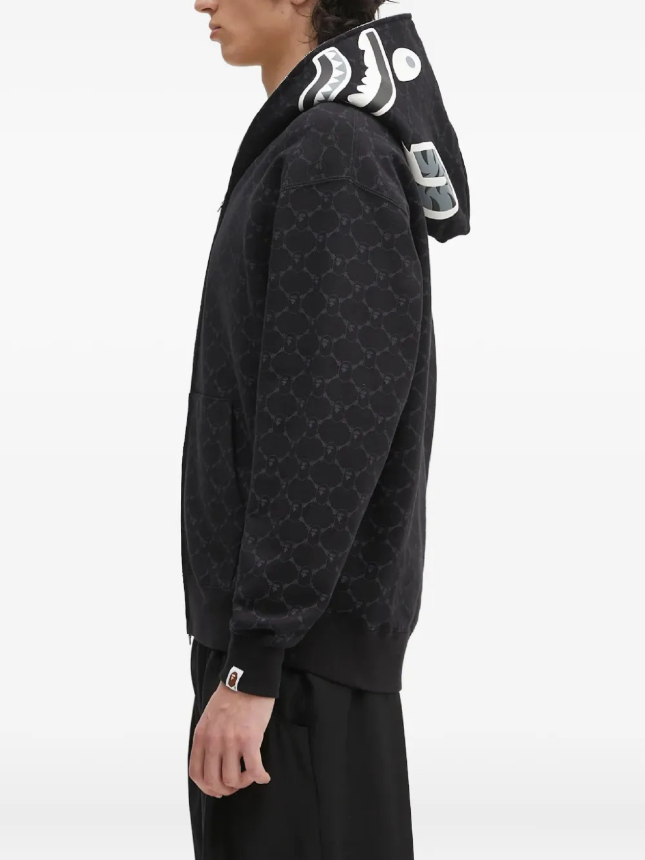 Толстовка с капюшоном на молнии с монограммой в виде головы акулы BATHING APE A Bathing Ape, черный 45 087₽