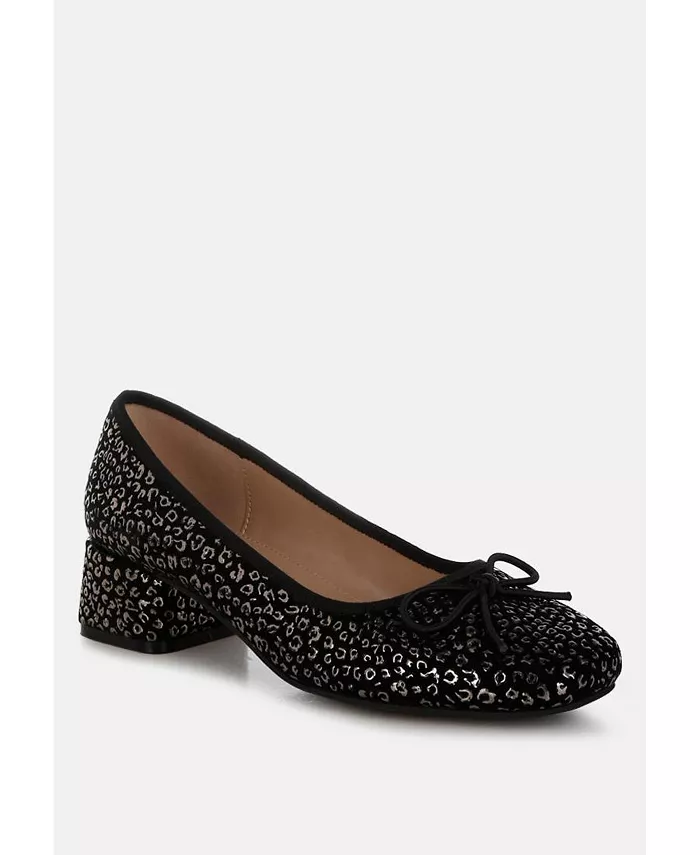 Где элегантность встречается с блеском для ваших особых случаев, изготовленных из высококачественной замши, эти балетки на каблуке созданы, чтобы вы сияли на танцполе. Металлический леопардовый принт и изящная деталь в виде банта делают их еще лучшей парой беллет для любой вечеринки, когда вы хотите нарядиться.