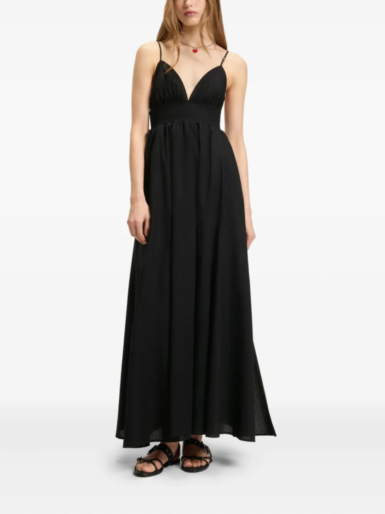 HUGO плиссированное платье макси с V-образным вырезом, черный