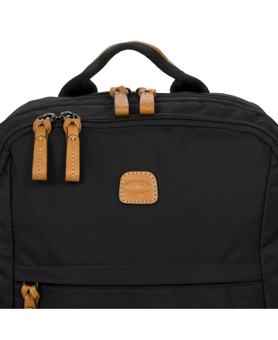 Рюкзак Nomad из коллекции X-Travel от Bric изготовлен из прочного, легко чистящегося нейлона. Детали из качественной кожи делают этот легкий дорожный рюкзак стильным как для города, так и для путешествий. Благодаря своим размерам, рюкзак удобен для переноски и идеально подходит в качестве ручной клади или рабочего рюкзака. Нижний передний карман на молнии обеспечивает быстрый и легкий доступ, а также имеются 2 боковых кармана на молнии. Задний карман на молнии позволяет надеть рюкзак на любую ручку багажного отделения. Регулируемые плечевые лямки и спинка рюкзака имеют мягкую подкладку и обтянуты дышащим материалом. Два основных отделения на молнии включают в себя: переднее меньшее отделение с карманом на молнии и 4 отделениями для хранения, а также 2 кармана для ручек; заднее и большее отделение снабжено мягким чехлом для ноутбука или планшета.