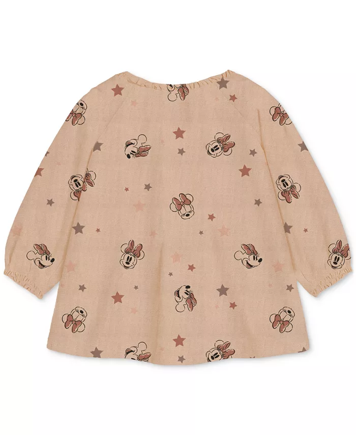 Верх: оборчатый круглый вырез горловины; длинные рукава со спущенным плечом; принт Минни Маус по всей поверхности.