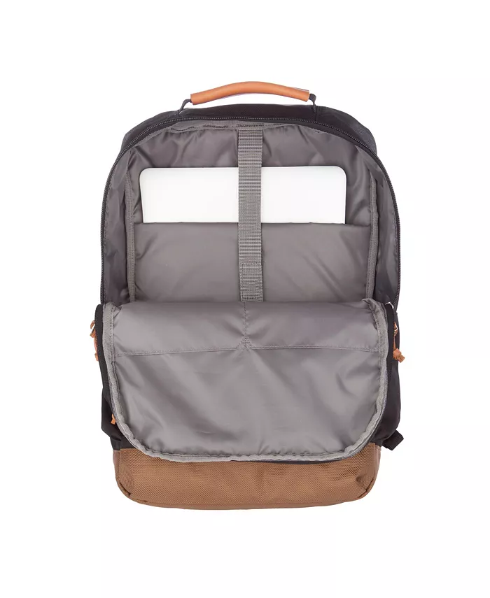Дизайн включает в себя обтянутую кожей ручку для переноски и кожаные застежки-молнии, сочетающие стиль с функциональностью. Для удобства во время ношения рюкзак оснащен мягкой, дышащей сетчатой задней панелью со стеганым рисунком. Мягкие, регулируемые плечевые ремни включают дышащую сетку на нижней стороне, что обеспечивает удобную посадку даже при длительном использовании. Добавляя нотку изысканности, кожаная крепежная квадратная деталь украшает внешнюю часть. Рюкзак предлагает достаточно места для хранения с двумя открытыми боковыми карманами, двумя надежными передними карманами на молнии и большим основным отделением с мягким чехлом для ноутбука, способным вместить 15-дюймовый ноутбук, а также двумя большими открытыми карманами. Внутри дополнительный карман с организацией имеет три высоких кармана, карман с клином, подходящий для телефона, и поводок для ключей, что позволяет легко получить доступ и организовать необходимые вещи во время движения.