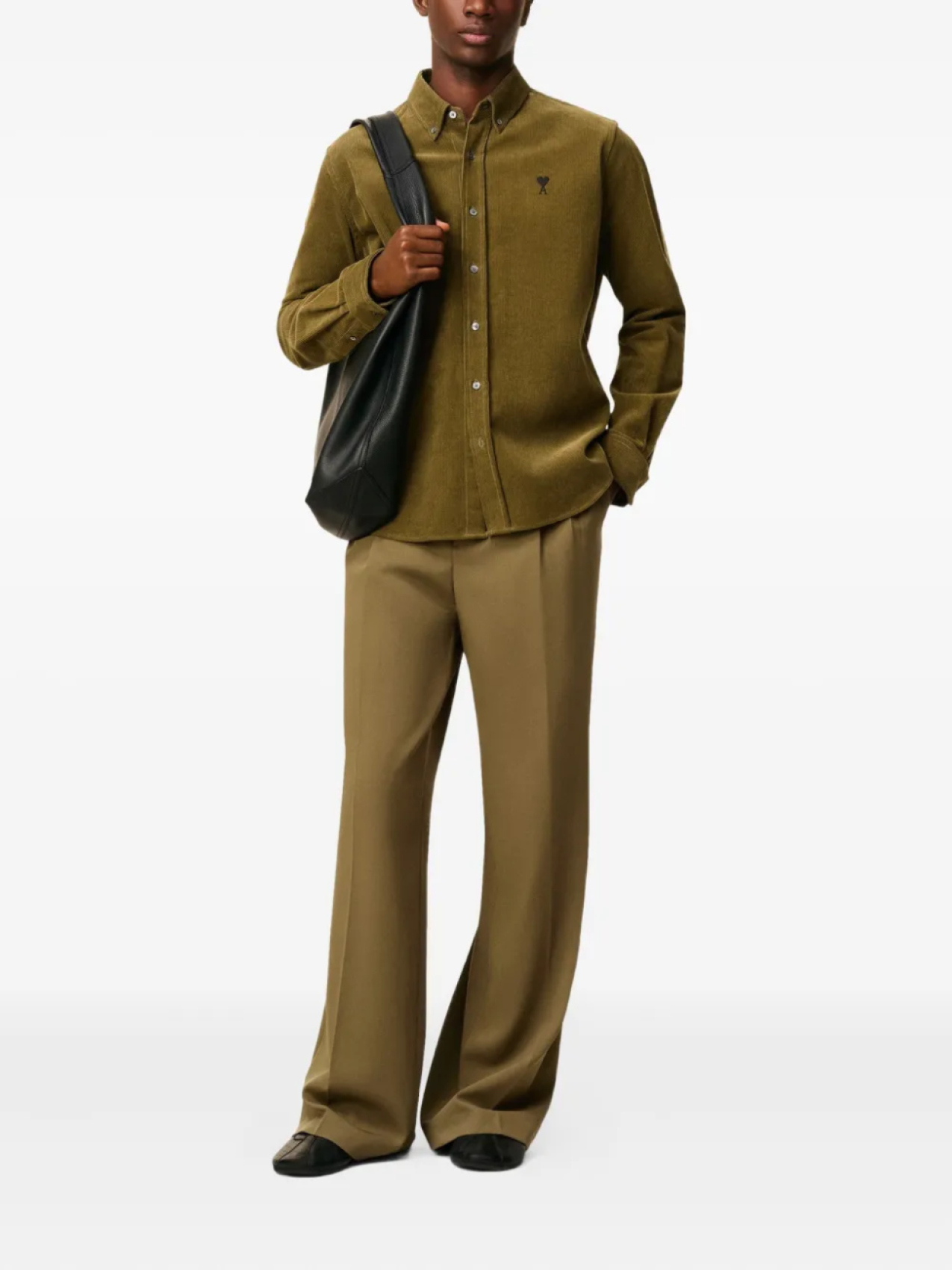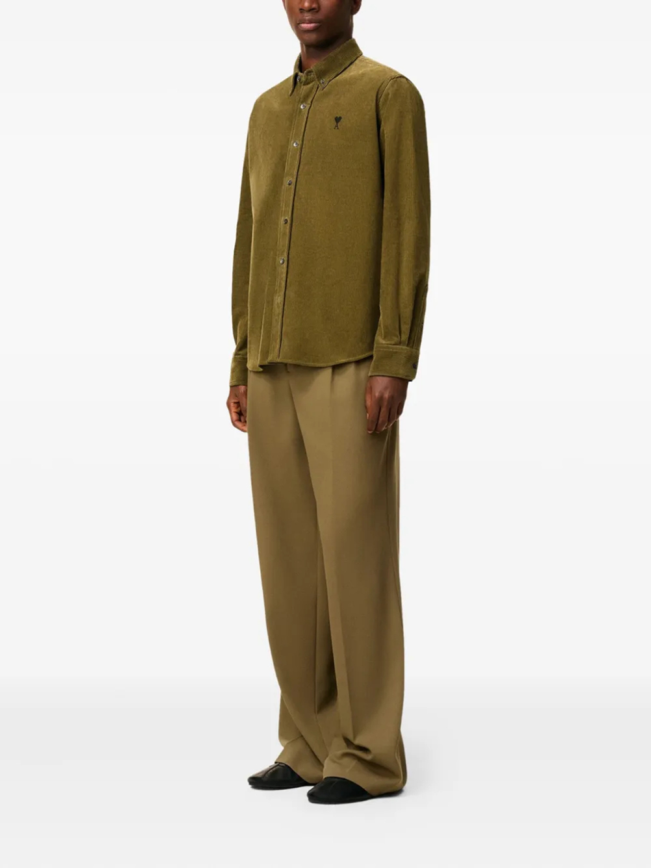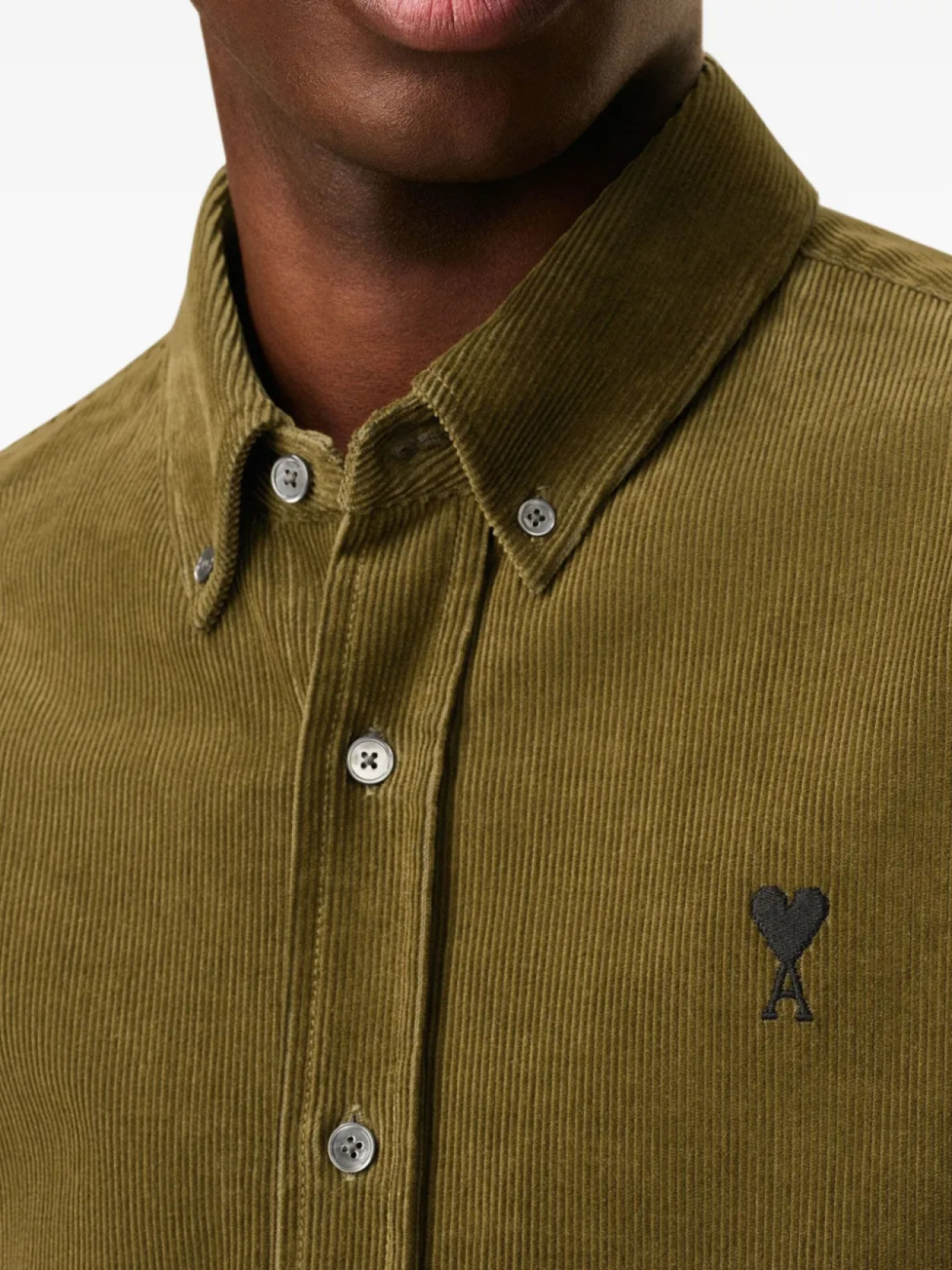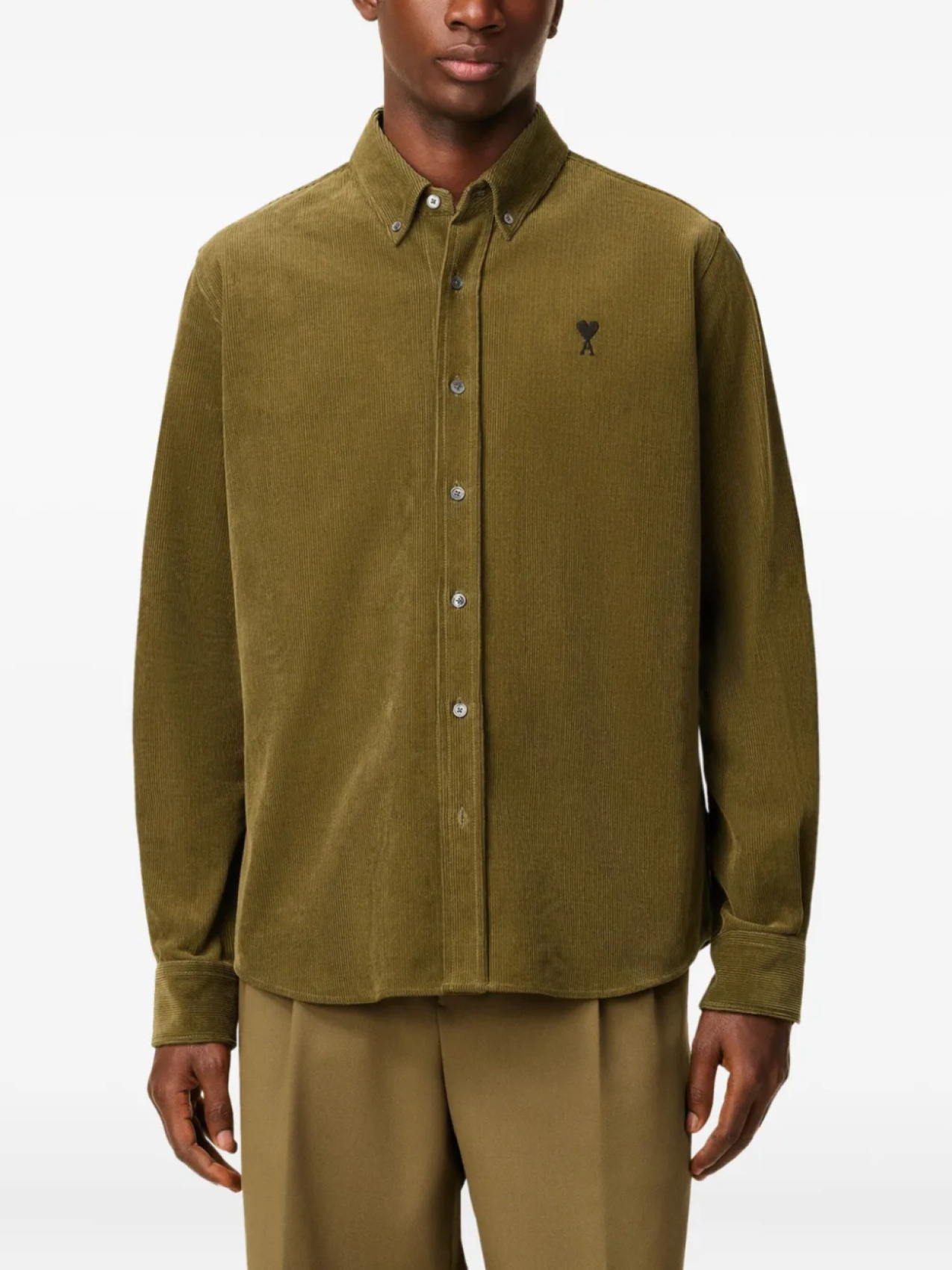 Рубашка AMI Paris из вельвета на пуговицах, зеленый 20 532₽