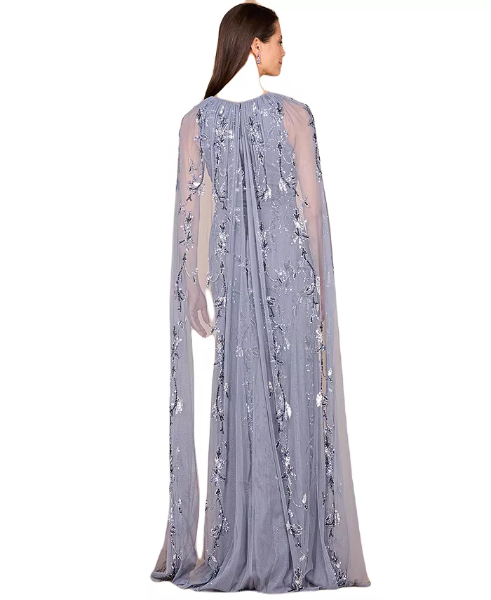 Женское платье-русалка с бисером и длинной накидкой Lara, синий