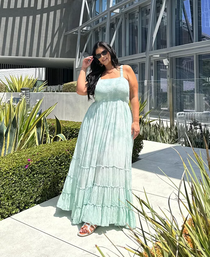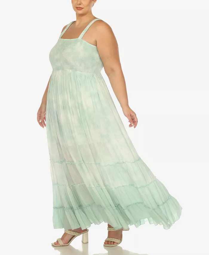 Платье макси с рюшами и сборкой Plus Size White Mark, зеленый