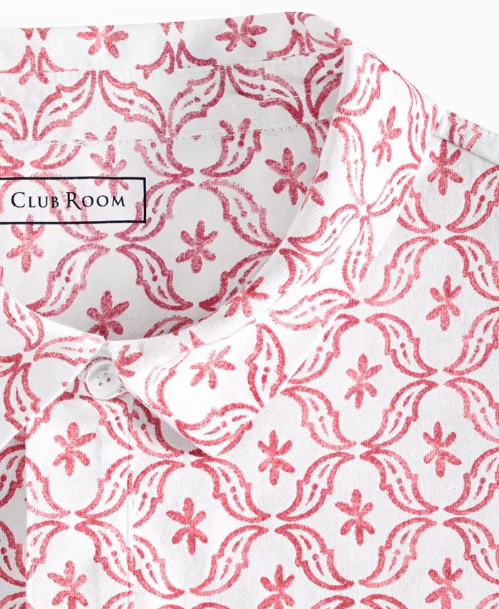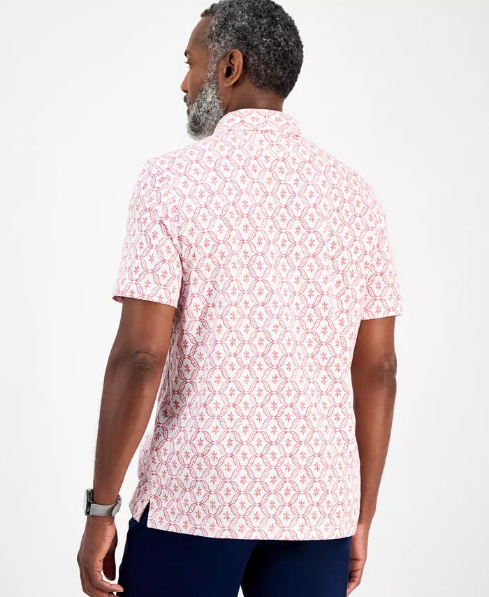 Стильное мужское поло Club Room с коротким рукавом и оригинальным принтом.