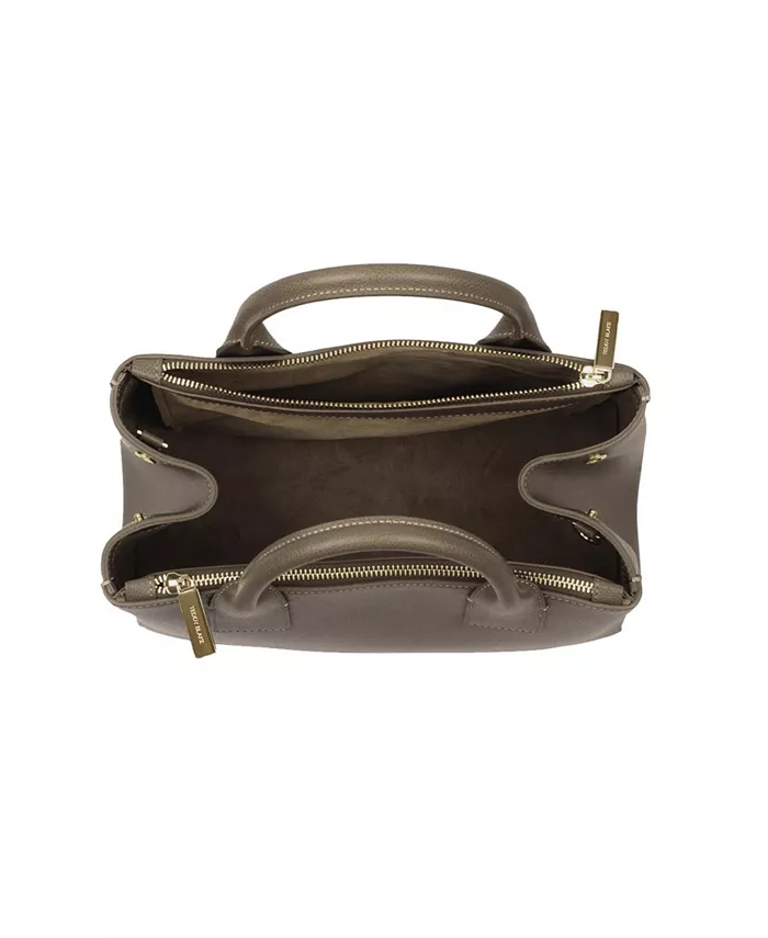 Дизайн Bella сочетает в себе как классические, так и современные линии, что делает ее идеальным спутником для современной женщины. Острая и структурированная форма изготовлена в Италии из зернистой телячьей кожи. Имеет организованную замшевую внутреннюю часть с центральным отделением и боковыми карманами на молнии во всю длину, боковые стороны можно расширить для дополнительного пространства.