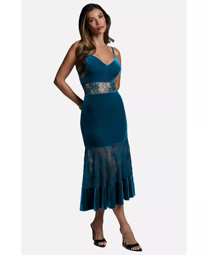 Женское бархатное кружевное платье миди Bebe — это потрясающее сочетание элегантности и современного стиля, идеально подходящее для любого особого случая.