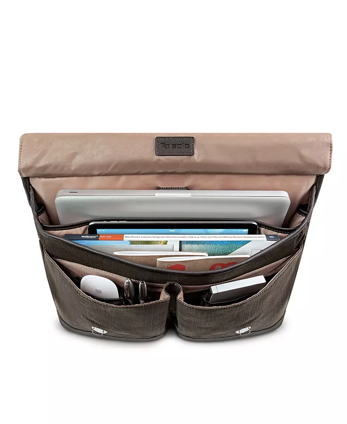 Легкий и такой организованный, этот портфель Bradford от Solo New York дает вам элегантную эффективность, которая вам нужна, когда вы в пути. Этот мягкий боковой портфель имеет полностью обитое отделение для ноутбука 15,6 дюймов, специальный карман для планшета, 2 передних кармана-органайзера и задний карман для файлов с магнитной застежкой.