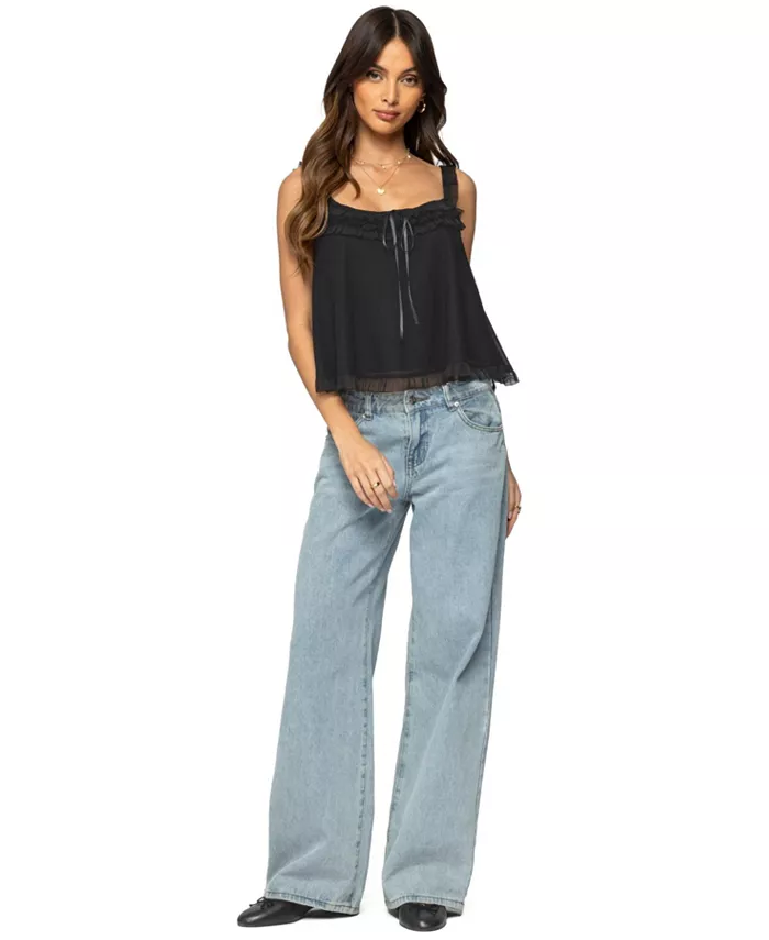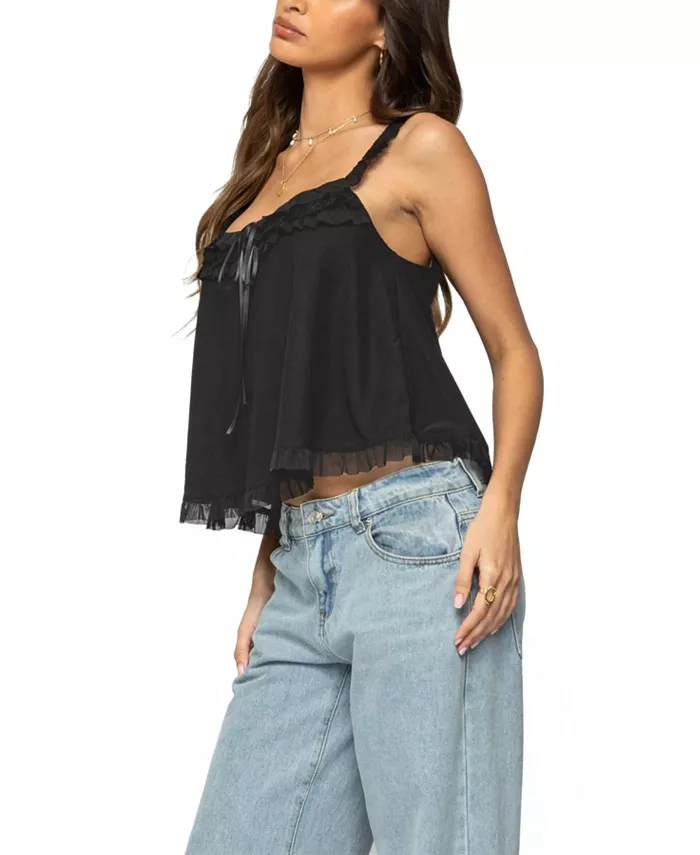 Женский топ-боди с рюшами и сетчатыми вставками Edikted, черный