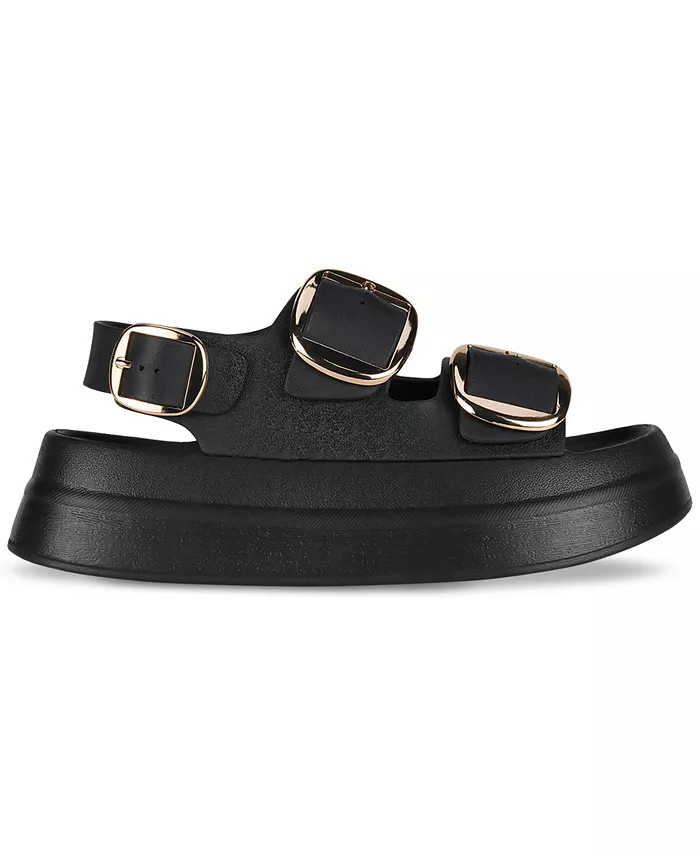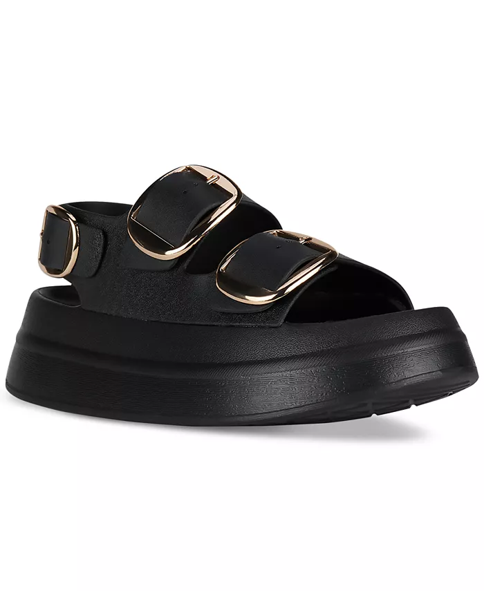 Массивная платформа-стелька и ремешки с пряжками смягчают каждый шаг в стильных босоножках Jeffrey Campbell Blithe.