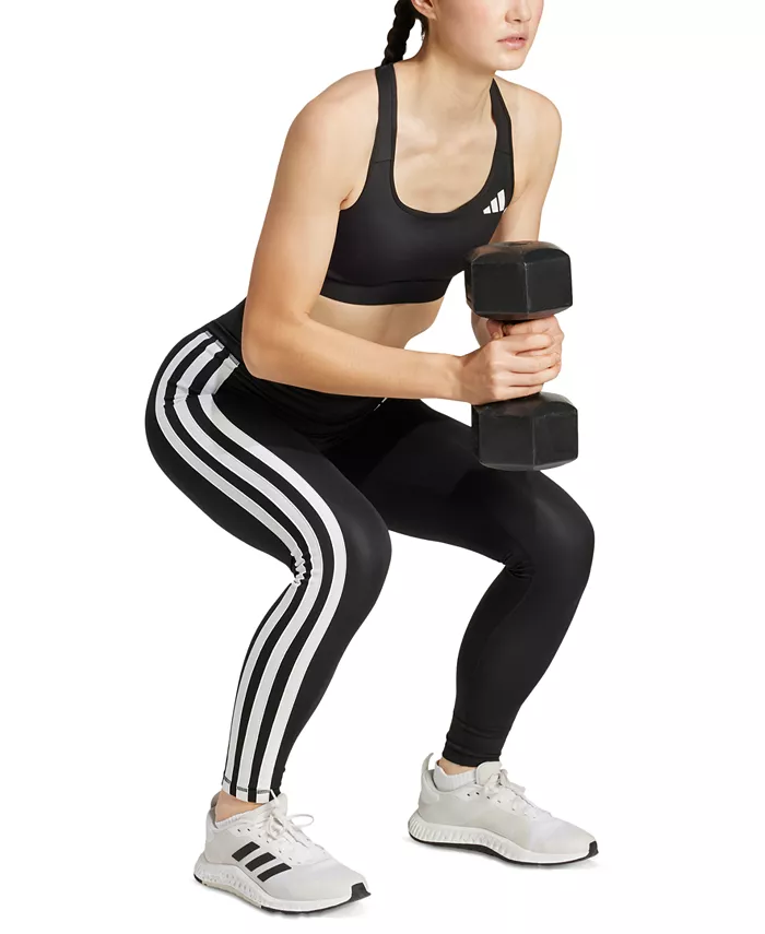 Почувствуйте облегающую посадку и свободу движений в леггинсах Optime от adidas, украшенных фирменным фирменным принтом с тремя полосками.