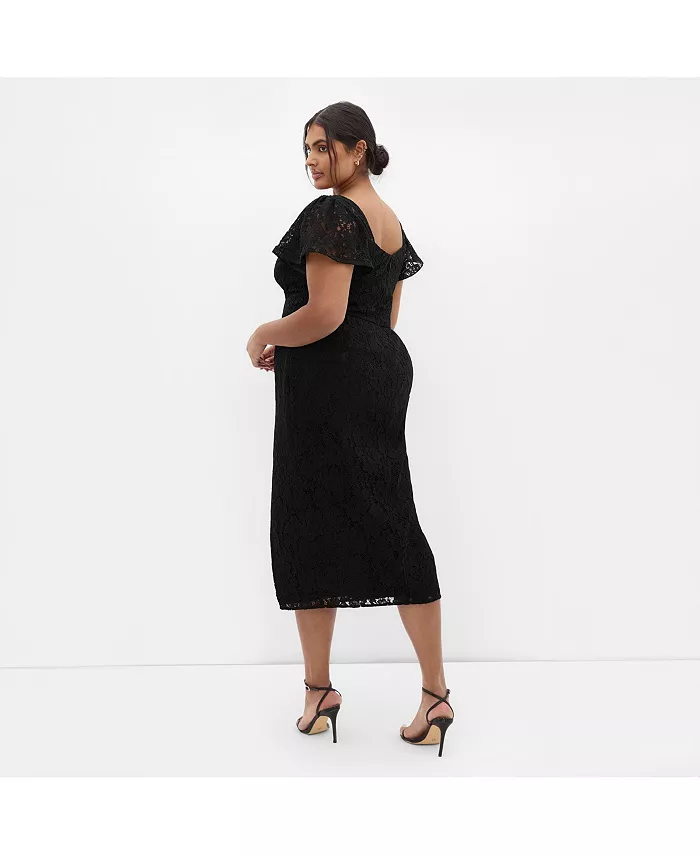 Платье миди с кружевом Maisie больших размеров CITY CHIC, черный