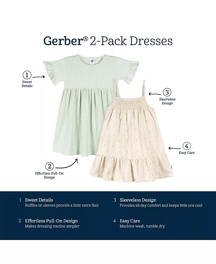 Платье для девочки с коротким рукавом и без рукавов, 2 шт Gerber, зеленый