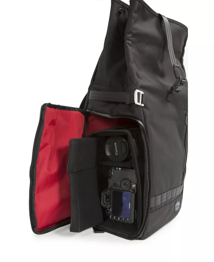 Водонепроницаемая застежка-молния YKK с магнитной системой застежки, съемный чехол для ноутбука 15", отсек для камеры, полностью регулируемый нагрудный ремень со стабилизатором, потайной карман для быстрого хранения, акценты из черной светоотражающей ленты 3M