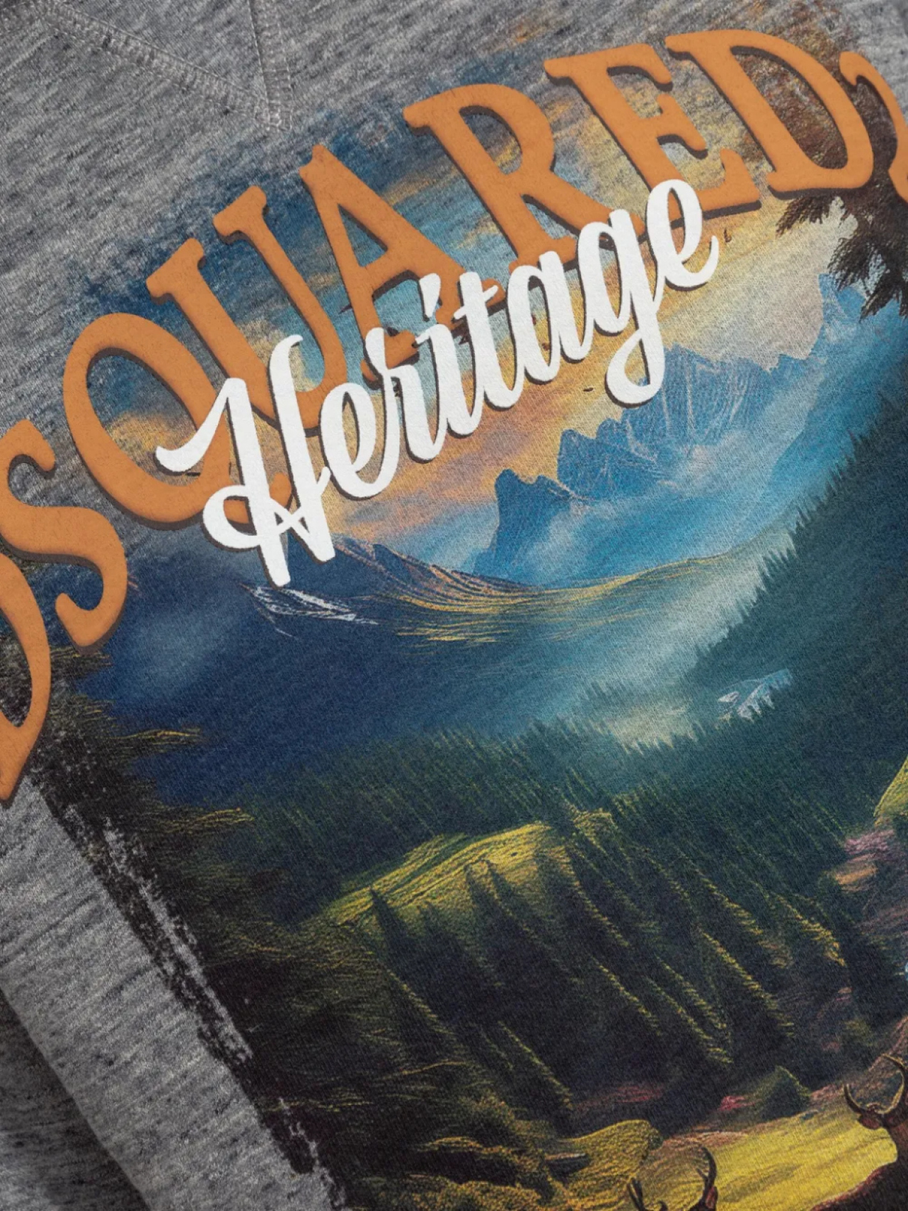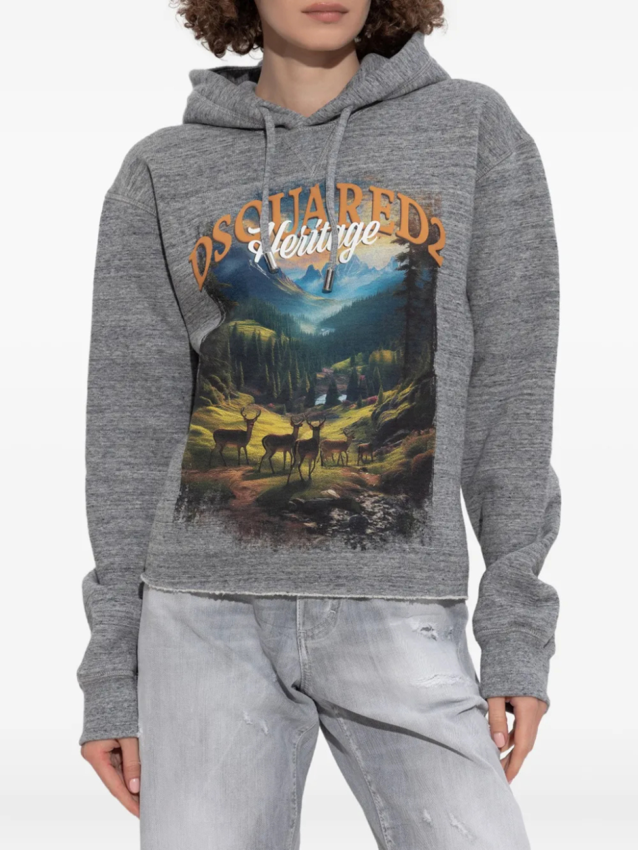 Толстовка с капюшоном DSQUARED2 с ландшафтным принтом, серый