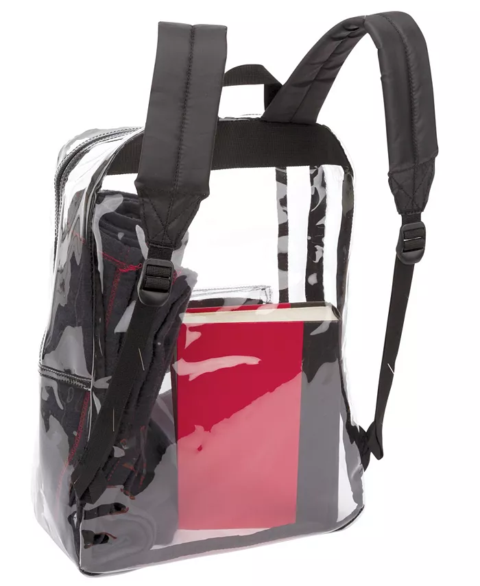 Рюкзак Clear Pass Daypack с передним карманом на молнии и регулируемыми ремнями обеспечивает достаточно места для хранения книг, школьных принадлежностей и многого другого. Прозрачный пластиковый материал конструкции позволяет легко быстро идентифицировать и находить содержимое в любое время. Он также подходит для путешествий и достаточно мал для ребенка, а также достаточно велик для взрослого. Плечевые ремни имеют мягкую подкладку для удобного ношения, легкой переноски и распределения нагрузки. Передний карман и основной карман закрываются прочными молниями, фиксируя наушники и другие мелкие предметы. Рюкзак также оснащен верхней ручкой, которая позволяет повесить его на крючок, на дверь или в шкафчик.
