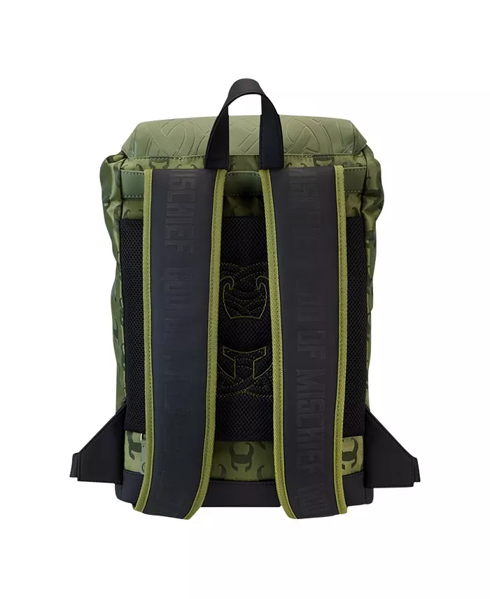 Оставайтесь организованными в стиле Локи с этим рюкзаком Loungefly. Его прочная конструкция имеет металлический логотип спереди и большое отделение на молнии, которое, как и положено, золотого цвета. Приготовьтесь сеять семена хаоса, как Бог Озорства, упаковывая предметы первой необходимости в этот элегантный рюкзак.