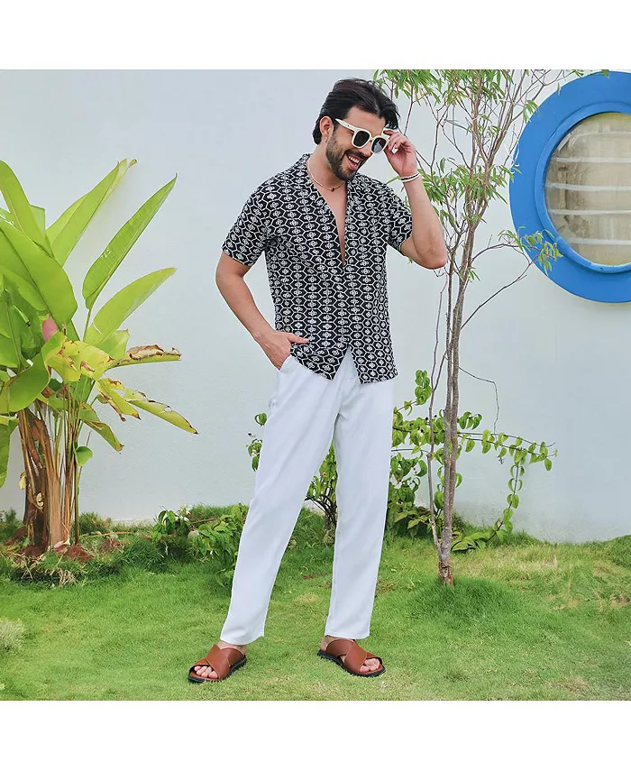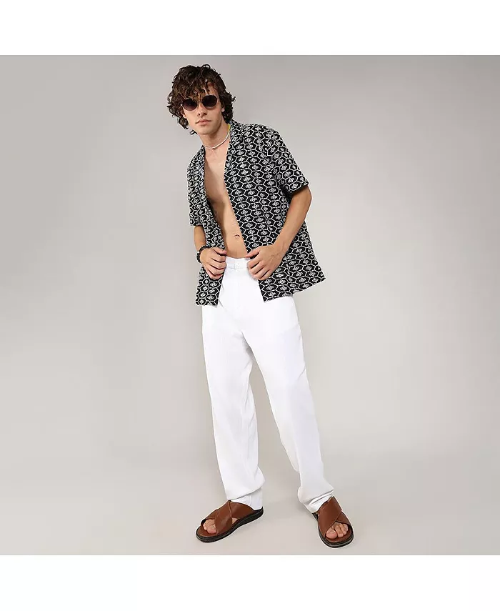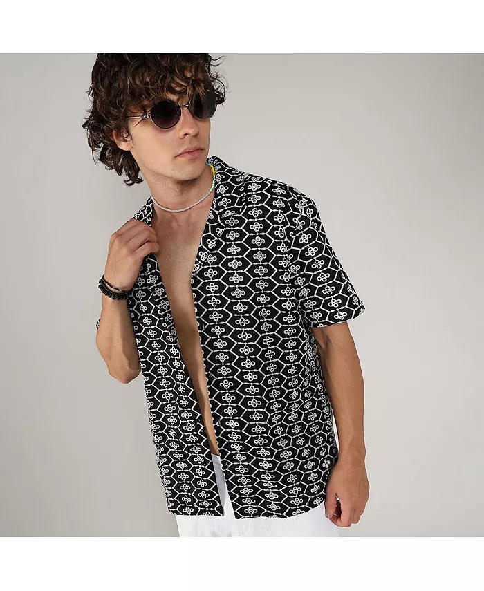 Мужская рубашка Obsidian Black с геометрической вышивкой Campus Sutra, черный