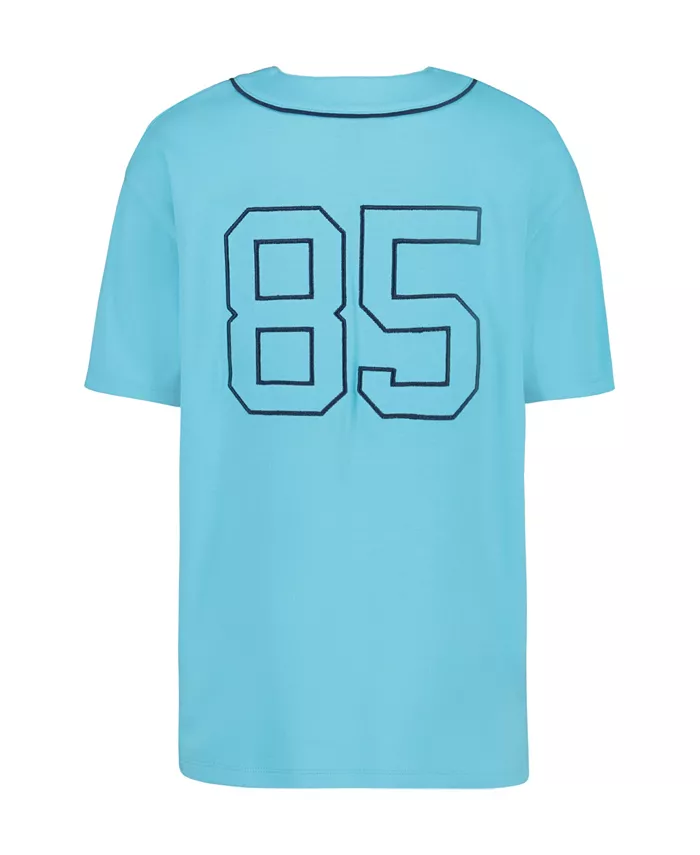 Футболка со спортивным номером на спине и бейсбольным вырезом выполнена из мягкой и дышащей хлопковой смеси для комфорта во время активного отдыха.