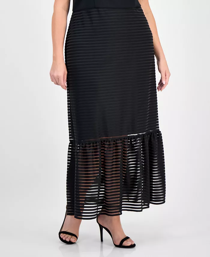 Полупрозрачная юбка в теневую полоску с оборкой по подолу