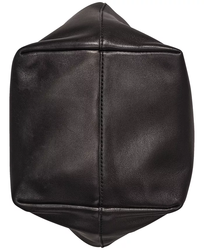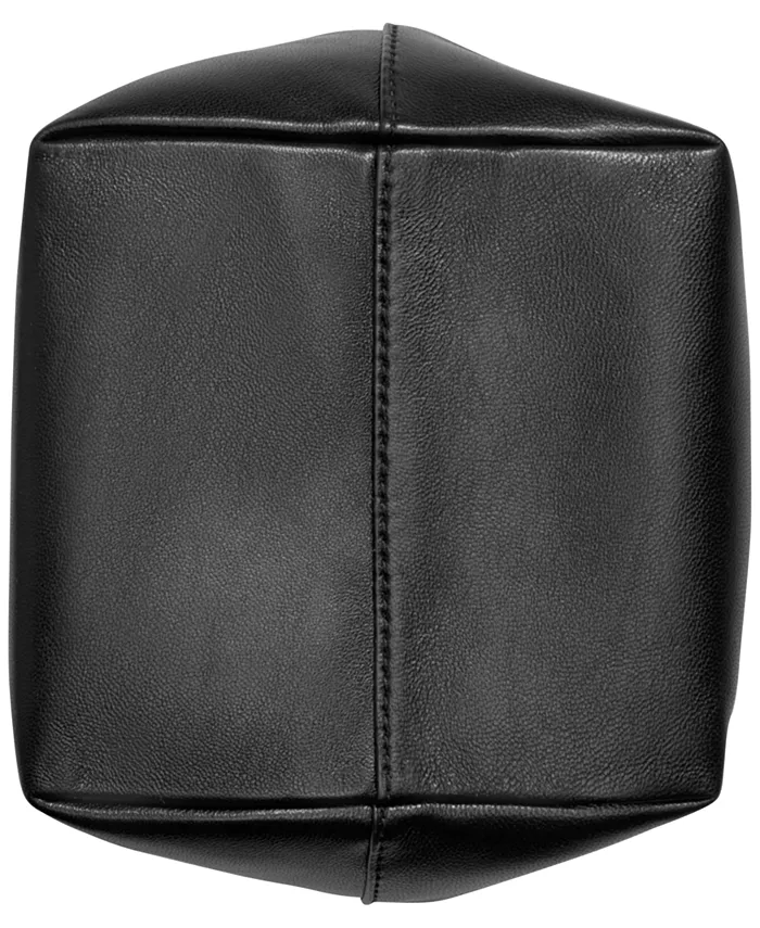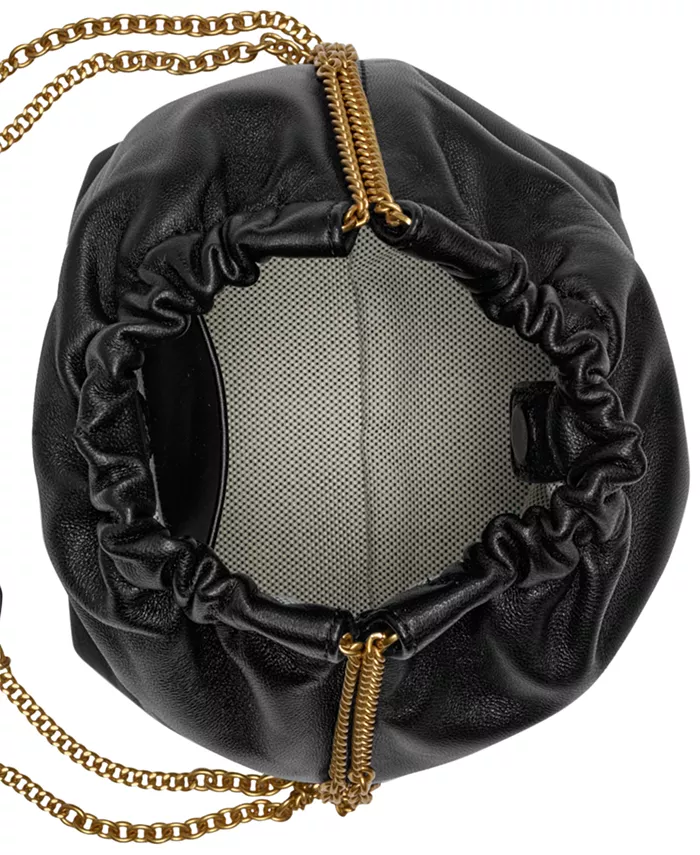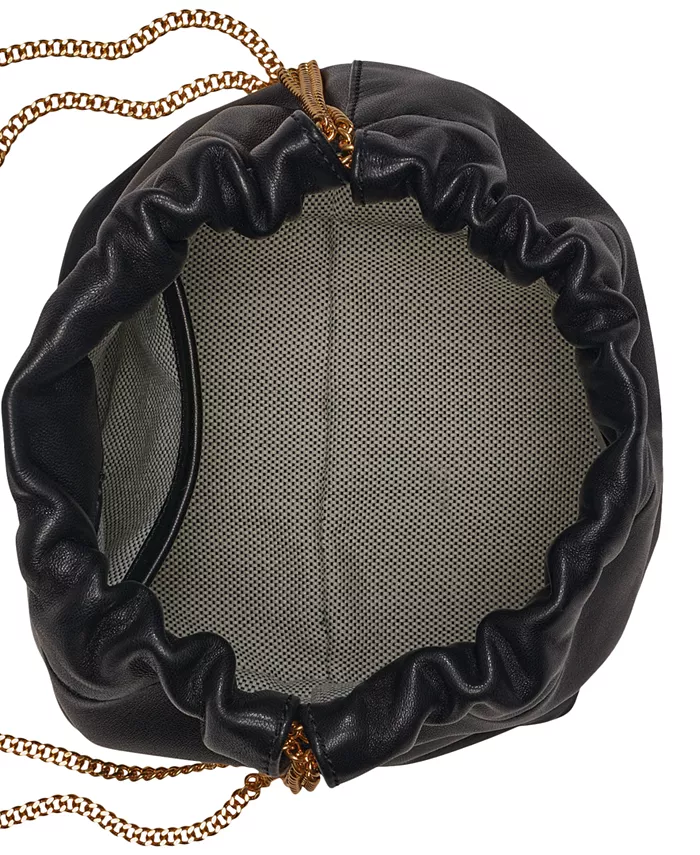 Эта сумка через плечо от Donna Karan, выполненная в компактном размере, выполнена из кожи, имеет свободный силуэт и блестящие металлические детали, придающие ей изысканный вид.