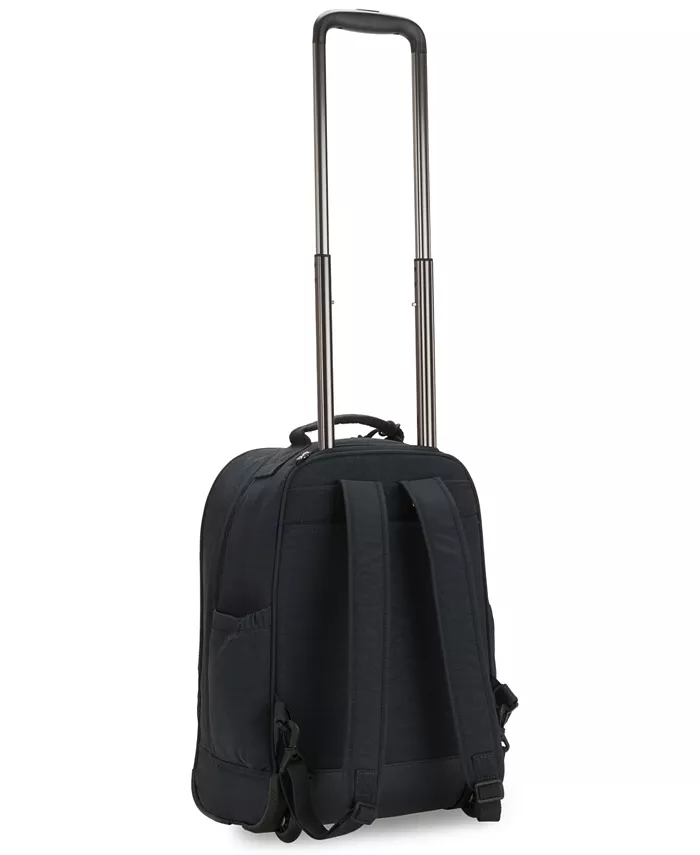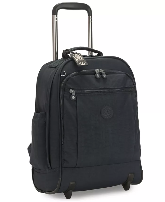 Снаружи — логотип Kipling, два передних кармана на молнии, два вращающихся колеса, карманы для бутылок с водой.