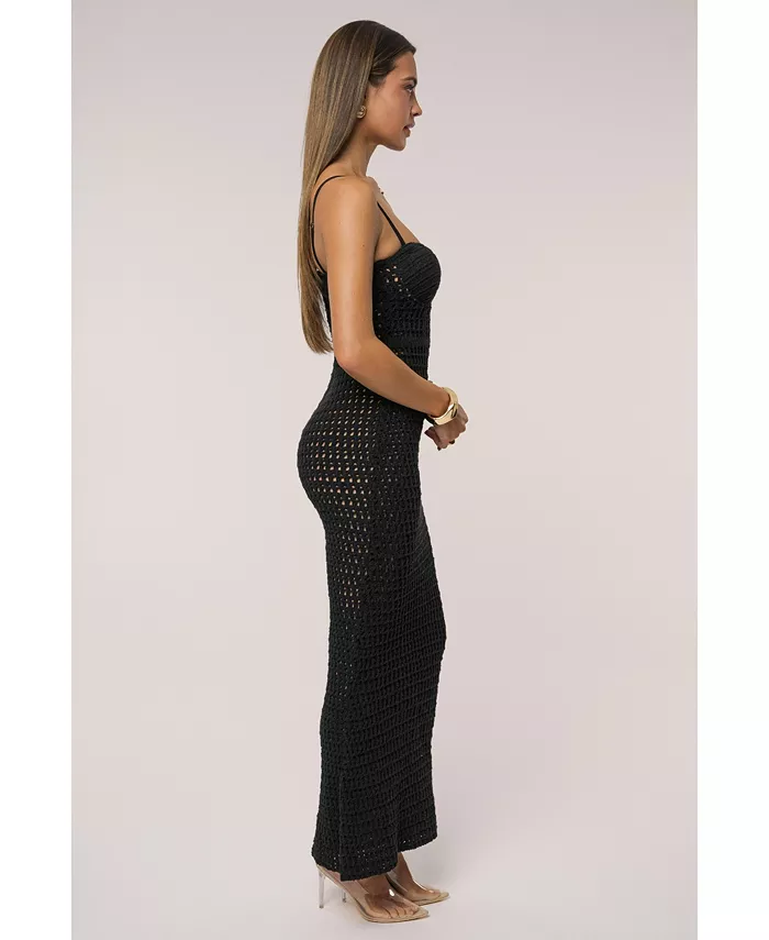 Женское макси-платье Deep Sea с кружевной вязкой JLUXLABEL, черный