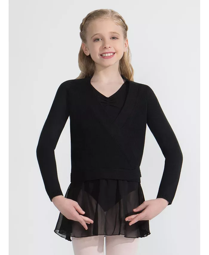 Детский свитер-обертка Если в вашей студии немного холодно, наш свитер-обертка станет идеальным решением. Изготовлен из мягкой трикотажной смеси. Имеет длинные рукава и завязку для нескольких вариантов завязывания. Ребристая отделка создает приталенный силуэт, подчеркивающий форму танцора. Носите поверх лео или повседневной одежды, чтобы оставаться в тепле, где бы вы ни находились. Характеристики продукта: Ребристая верхняя часть-обертка55% акрил, 45% хлопокV-образный вырезЗавязкаДлинные рукаваРекомендуемый уход: машинная стирка в холодной воде, деликатный режим и сушка в подвешенном состоянии