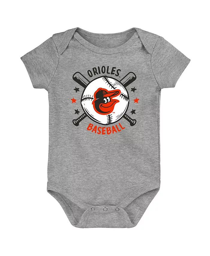 Набор из 3 боди для мальчиков и девочек Baltimore Orioles Batter Up в оранжевом цвете Outerstuff