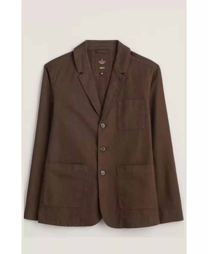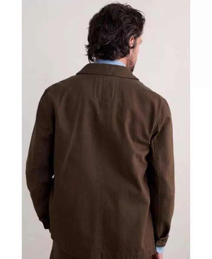 Повседневный пиджак в рабочем стиле с узором «елочка» и множеством карманов.