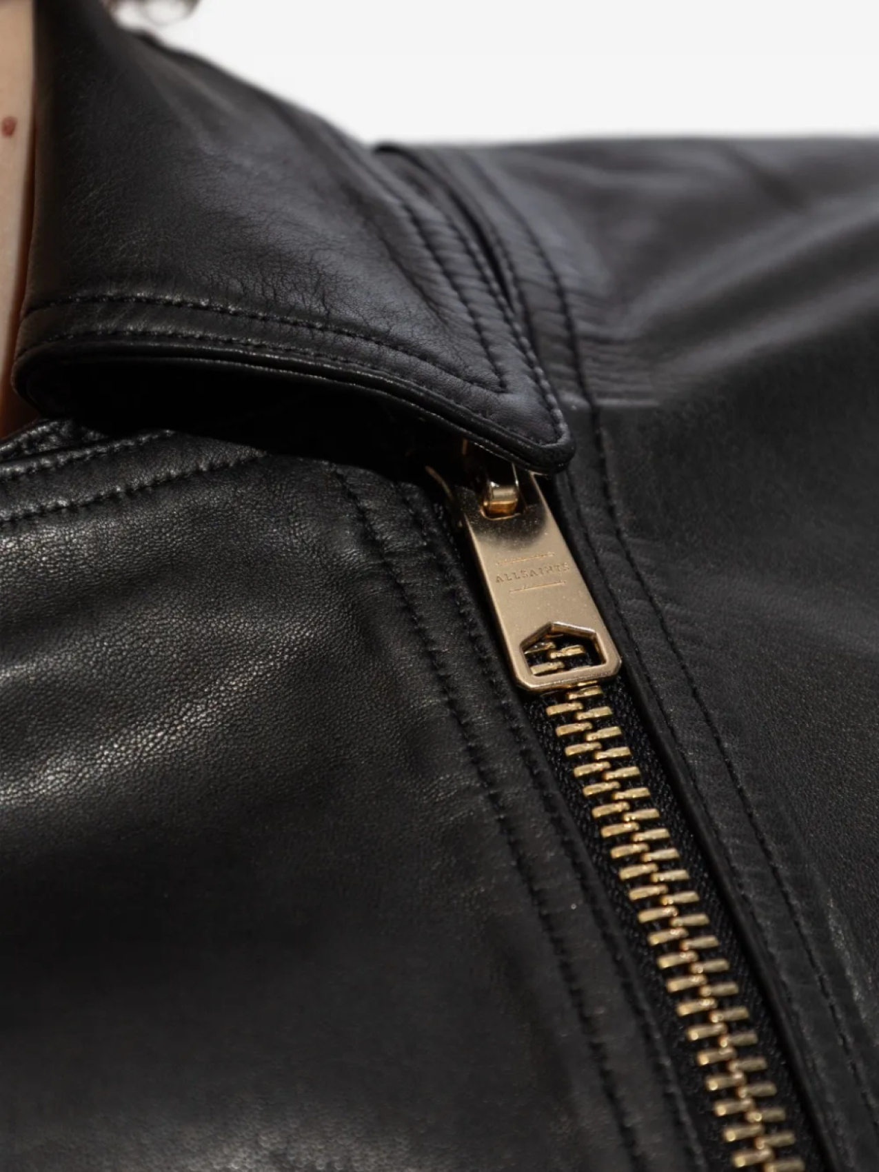 Кожаная куртка AllSaints Vela с асимметричной молнией, черный