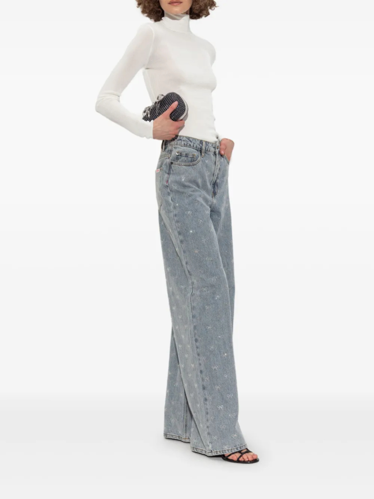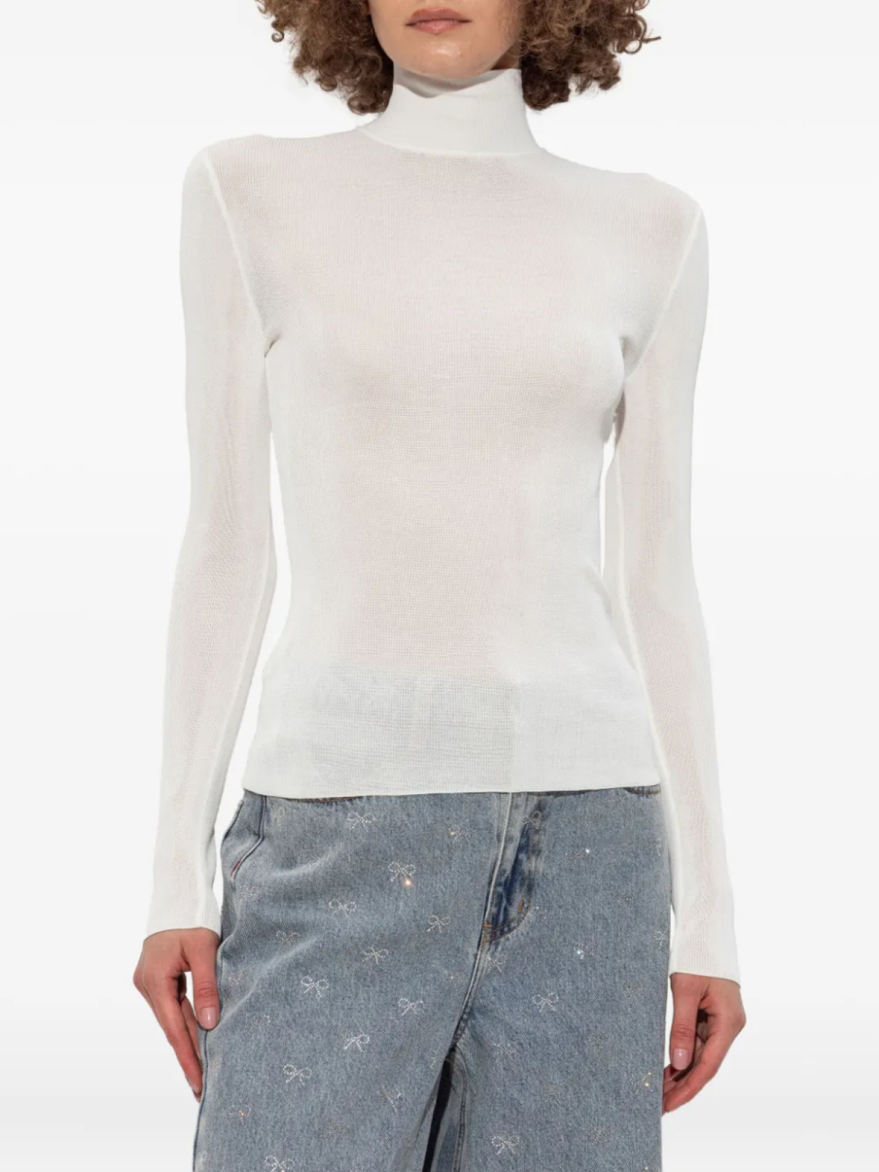 Топ с высоким воротом в рубчик Self-Portrait, белый 21 592₽