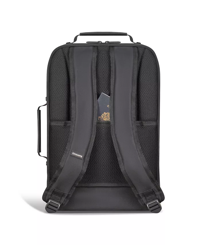 Дорожный рюкзак CHAMPS из коллекции Onyx изготовлен из легкого водостойкого нейлона. Имеет множество многофункциональных карманов и различные внутренние и внешние практичные атрибуты, такие как боковой эластичный карман для бутылки с водой, ремень для переноски со скрытым карманом на молнии и защитный карман с подкладкой RFID для радиочастотной идентификации. Удобно помещает 15,6-дюймовый ноутбук и планшет и оснащен универсальным последовательным портом USB-C для зарядки и кабелем для легкой зарядки на ходу.