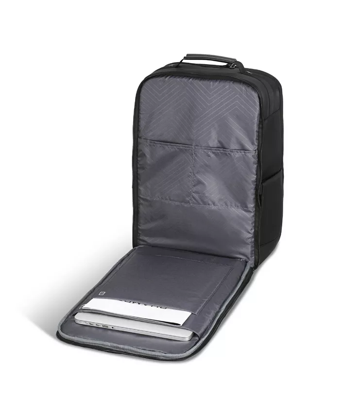 Размеры продукта - 17,5" Д x 11" Ш x 5" В Вес продукта - 3,5 фунта Легкий водостойкий нейлоновый материал Карман с защитной подкладкой для радиочастотной идентификации (RFID) Регулируемые сетчатые плечевые ремни Мягкий чехол для ноутбука и планшета 15,6" с застежкой-ремнем Порт зарядки универсальной последовательной шины (USB-C) и кабель для зарядки на ходу Мягкий сетчатый ремень для ручной клади Скрытый карман на молнии за ремнем для переноски Боковая растяжка, карман для бутылки с водой Верхняя и боковая ручка для переноски Внутренний съемный брелок для ключей нейлон Протирать чисто