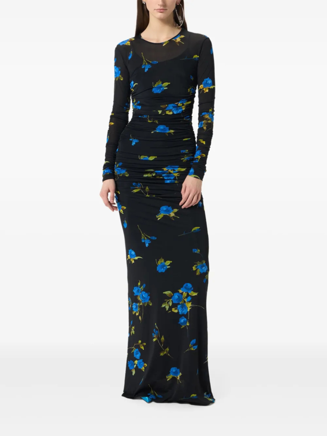 Blumarine платье макси со сборками и цветочным принтом, черный