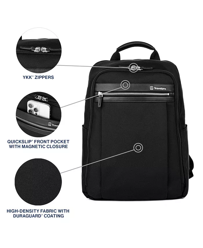 Размеры продукта: 6" Д x 12" Ш x 16" В Мягкий чехол для ноутбука размером до 16 дюймов и мягкий чехол для планшета размером до 12,9 дюймов обеспечивают встроенную защиту для электроники Молнии Yoshida Kogyo Kabushiki Aisha YKK обеспечивают ровность, плавность хода и исключительную долговечность Организационные отделения для хранения шнуров питания, внешних аккумуляторов и других повседневных вещей Внешние боковые карманы идеально подходят для бутылок с водой или зонтика. Передний карман Travelpro Quickslip с магнитной застежкой идеально подходит для надежного хранения и легкого доступа к мобильному телефону или другим необходимым вещам. Карман Travelpro ID Theft Block защищает кредитные карты и паспорта от потери и кражи личных данных. Детали из натуральной кожи и верхняя ручка обеспечивают изысканность и исключительную долговечность. Задний тканевый ремень крепится вокруг выдвижной ручки чемодана Rollaboard или Spinner для надежного штабелирования и свободного перемещения Ограниченная пожизненная гарантия Вес: 2,2 фунта. Полиэстер Протирать начисто