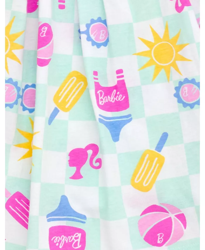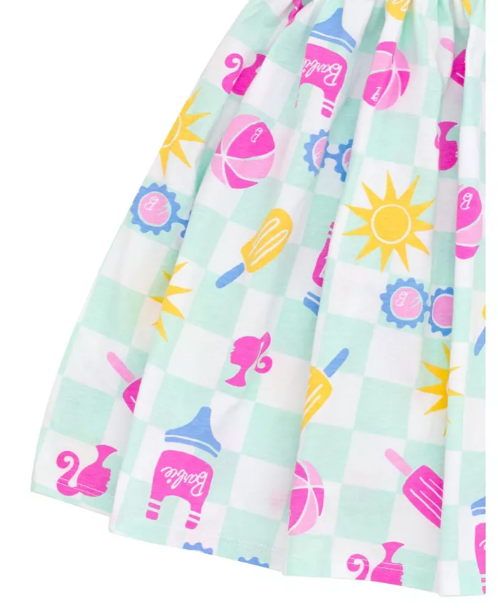 Приготовьтесь к приключениям в Доме Мечты и примите удивительное чувство стиля Барби с этим милым, удобным и стильным нарядом Барби! Это модное платье без рукавов отличается удобным кроем, легким в одевании дизайном и крутым клетчатым принтом с красочными летними иконками Барби, которые ваш модный