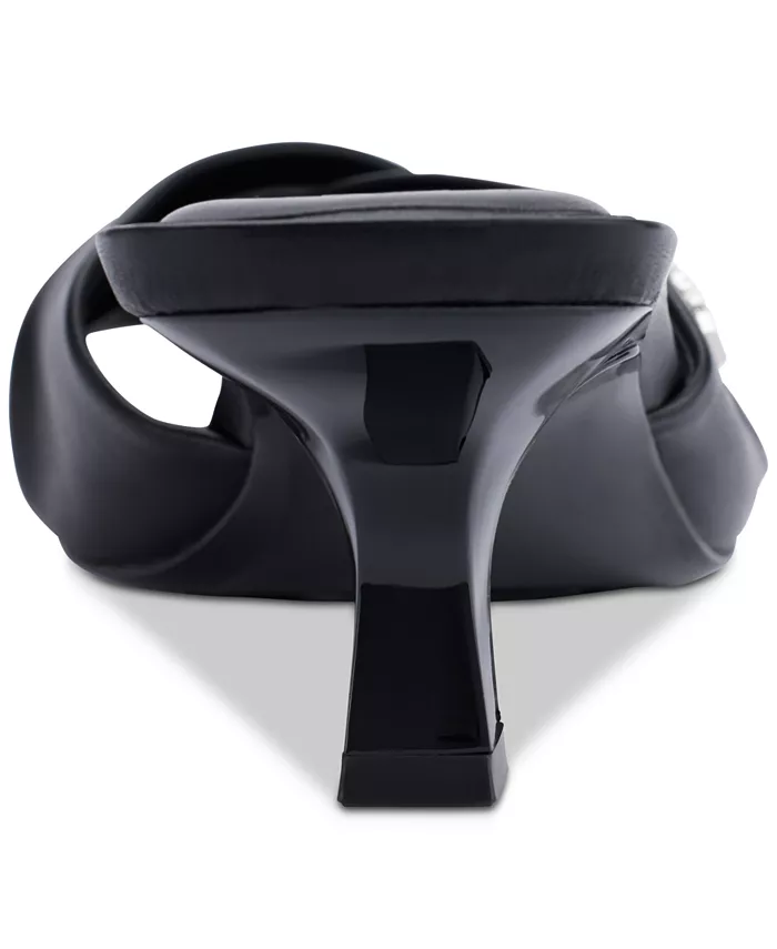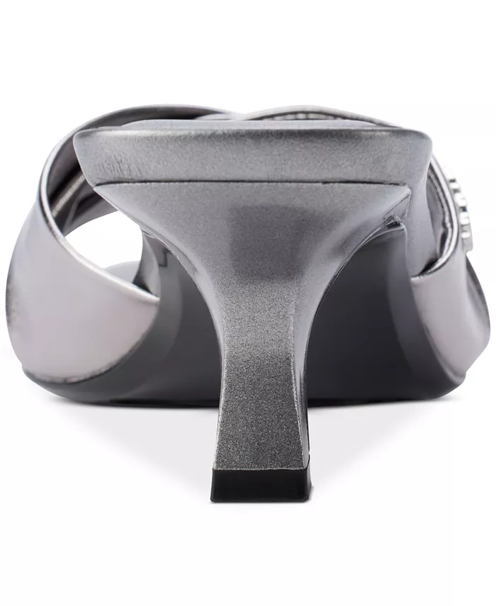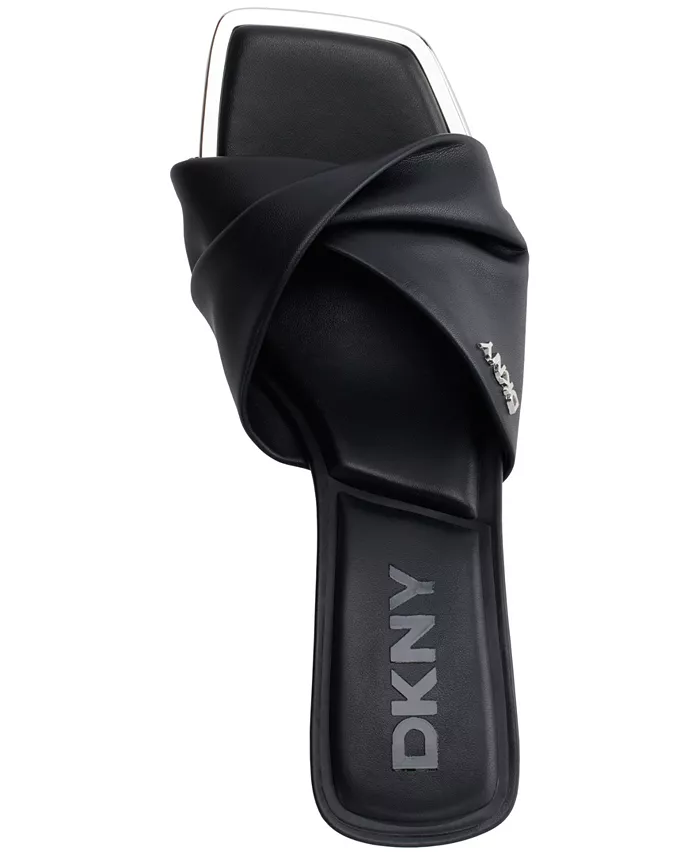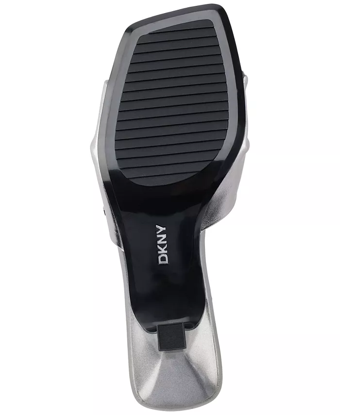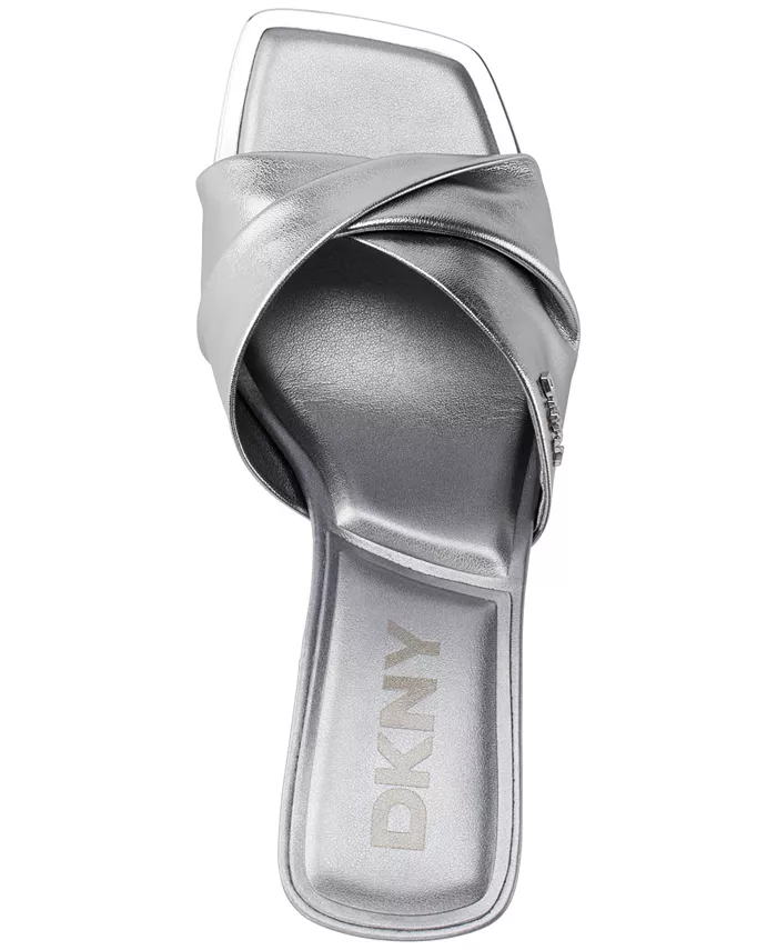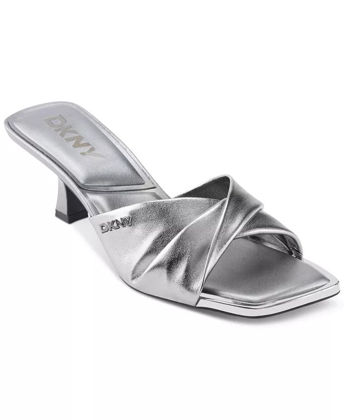 Металлический блеск подчеркивает изогнутые носки, создавая эффектный образ в босоножках DKNY Jolaine.