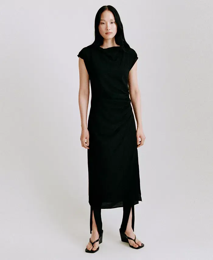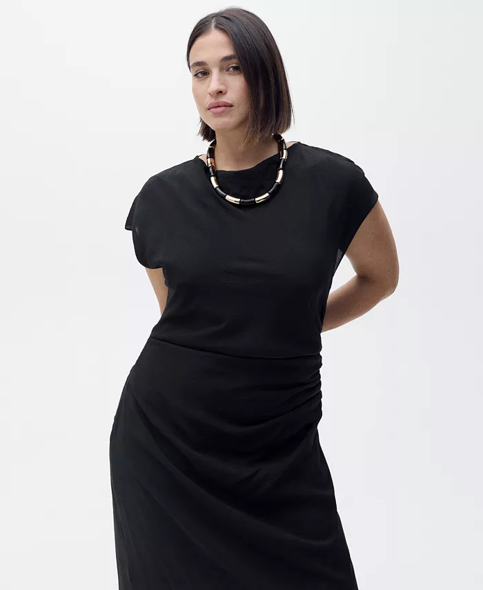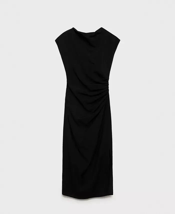 Женское платье прямого кроя с драпировкой MANGO, черный