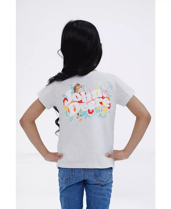 Официально лицензированная футболка John Deere с короткими рукавами и графическим принтом для девочек