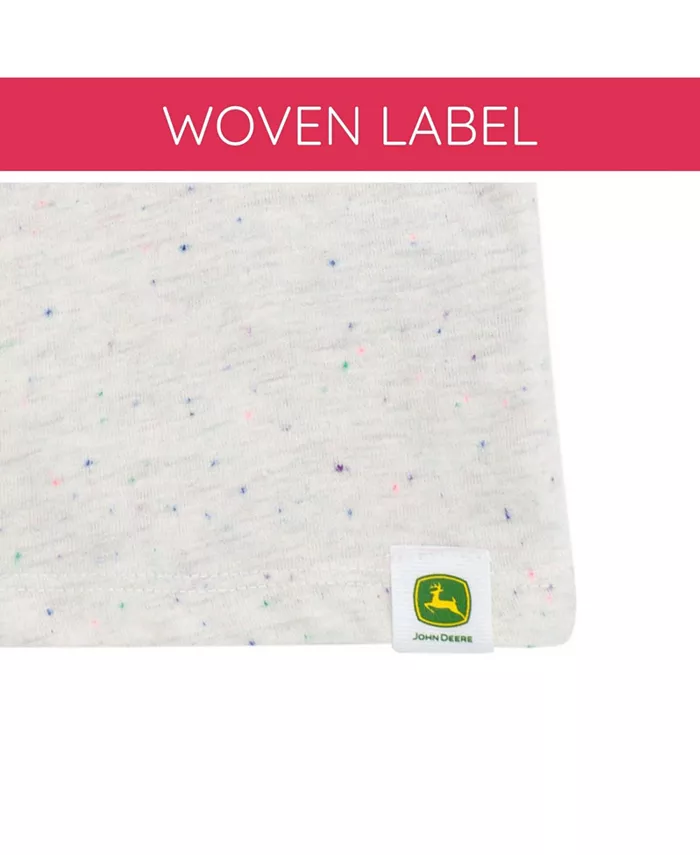 Поднимите летний стиль вашей девочки с помощью удобной футболки John Deere! Выбирайте принты лошадей, животных или фермерских рынков. Изготовлена ​​из мягкого хлопка для комфорта в течение всего дня во время игры.