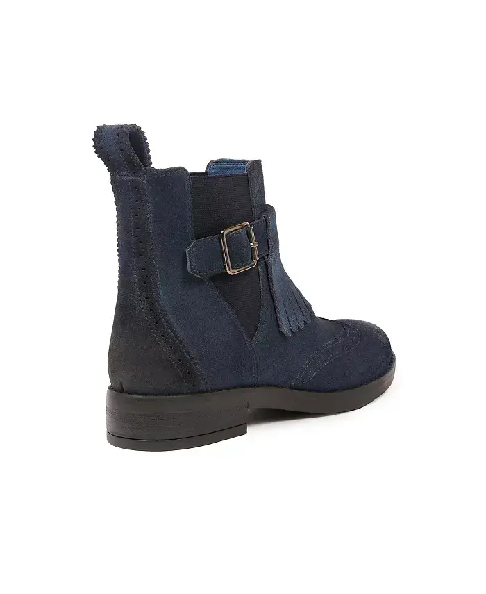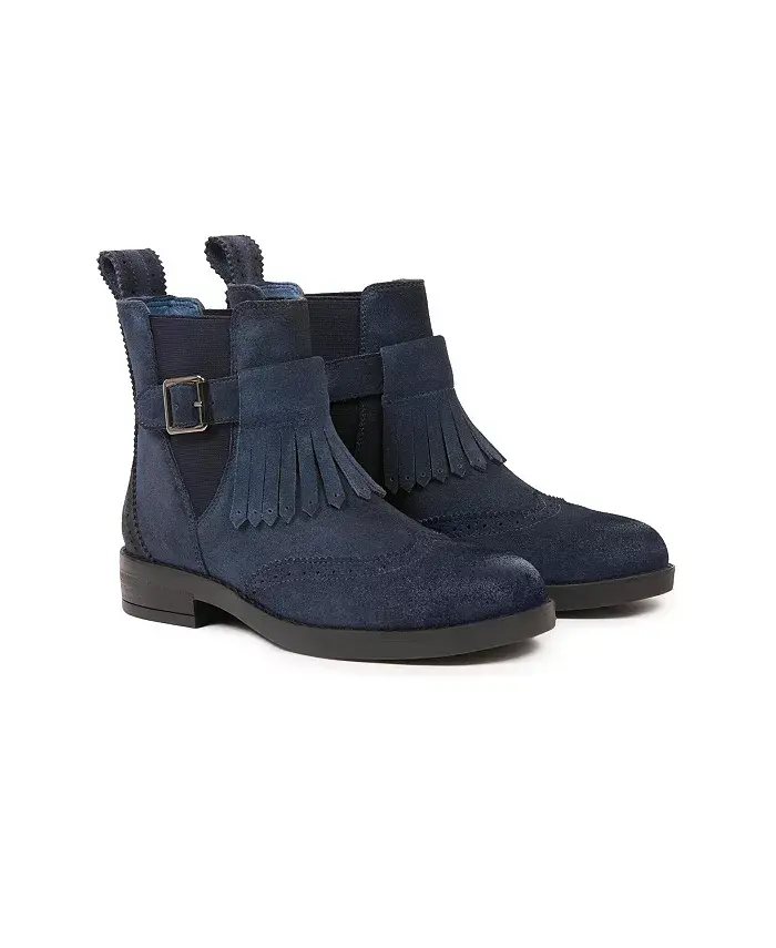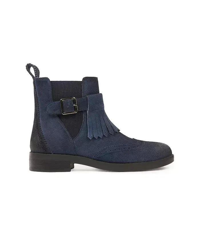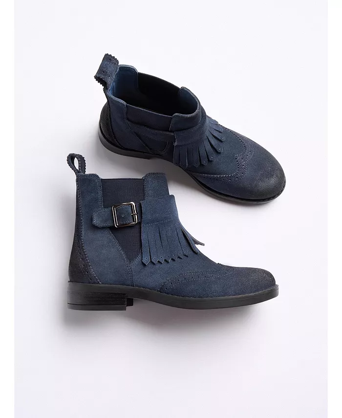 Эти ботинки челси сделаны из замшевого верха с эластичными деталями. Они имеют пряжку и ремешок со съемной бахромой, а также вырез в стиле броги для придания индивидуальности.