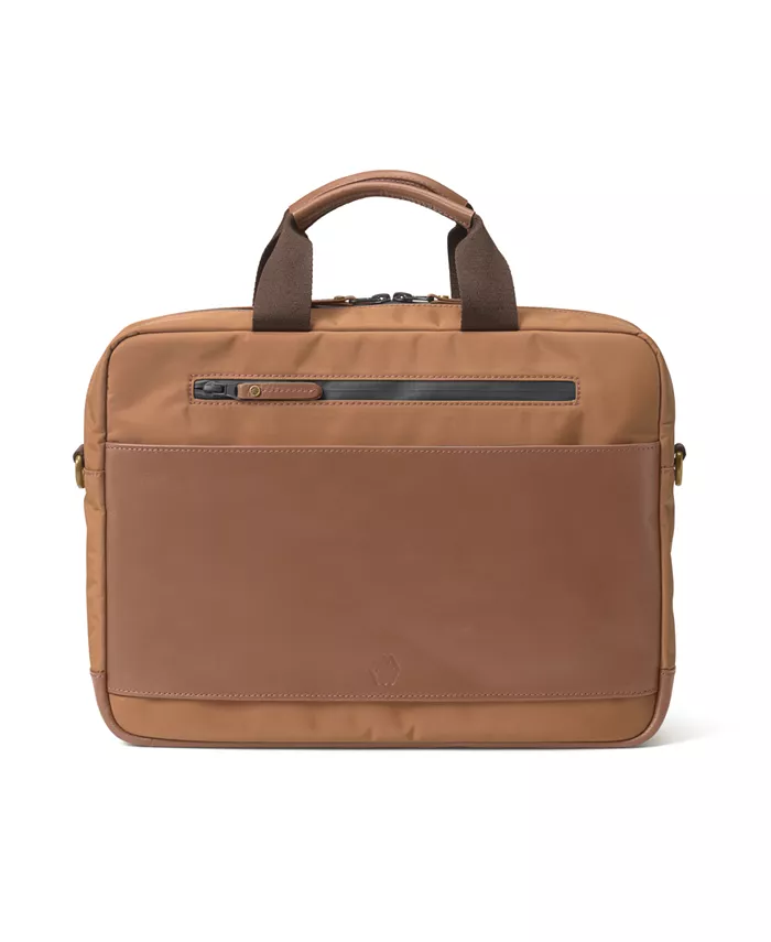 4-сторонняя защита: водонепроницаемый нейлон, водонепроницаемая кожаная отделка, водонепроницаемые молнии, герметичная конструкция швов. Основной карман с мягким карманом для ноутбука внутри. Внутренние накладные карманы с кожаной отделкой для дополнительного хранения. Передний карман-ластовица с внутренними накладными карманами и ремешком для ключей для мелких вещей. Внешняя задняя панель для багажа на колесиках. Антикварная латунная фурнитура.