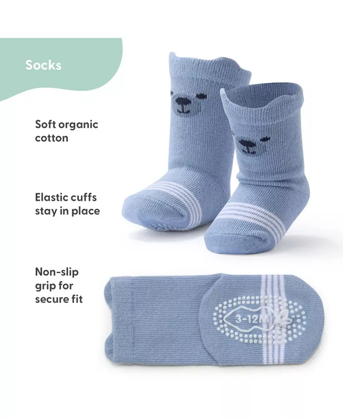 Оберните ножки вашего малыша в яркие цвета и максимальный комфорт. Эти носки из 100% дышащего хлопка дарят уютную мягкость, которая сохраняется в течение всего дня. Сочетание забавных узоров добавит игривости любому наряду, а эластичный, несъемный дизайн растет вместе с вашим ребенком.